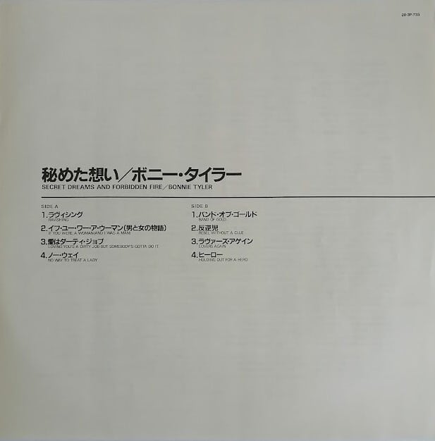 BONNIE TYLER ボニータイラー SECRET DREAMS AND FORBIDDEN FIRE 秘めた想い 中古レコード 国内盤 アナログ盤 12インチ盤 28・3P-733 洋楽