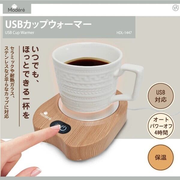 USB対応なのでオフィス、会議室、デスクなど、どこででも飲み物の温かさをキープできます。オートパワーオフ機能付きの安心設定となっております!!