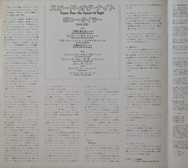 BONNIE TYLER ボニータイラー Faster Than The Speed Of Night スピード オヴ ナイト 中古レコード 国内盤 帯付き アナログ盤 12インチ盤 25・3P-441 洋楽